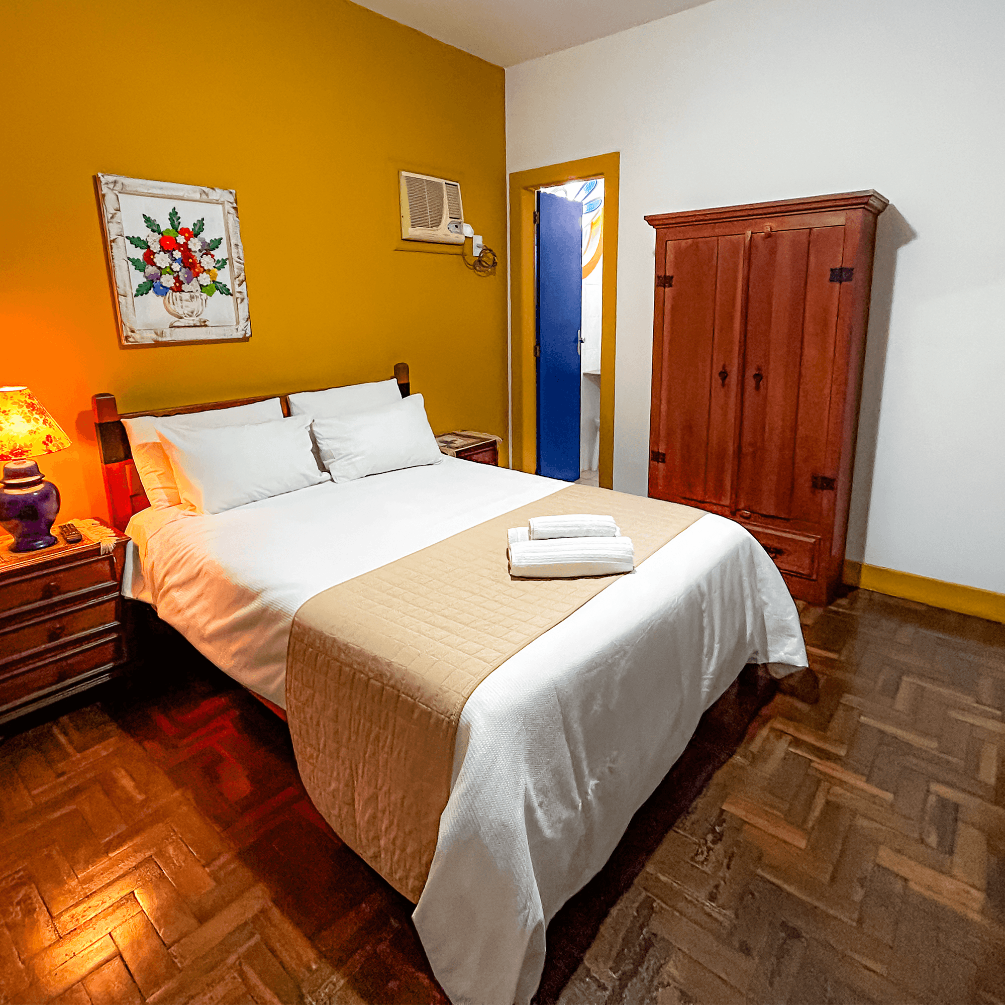 Suíte Duplo Casal Luxo oferece aconchego e comodidade para uma estadia perfeita a dois. Aqui, cada detalhe foi pensado para o seu bem-estar.